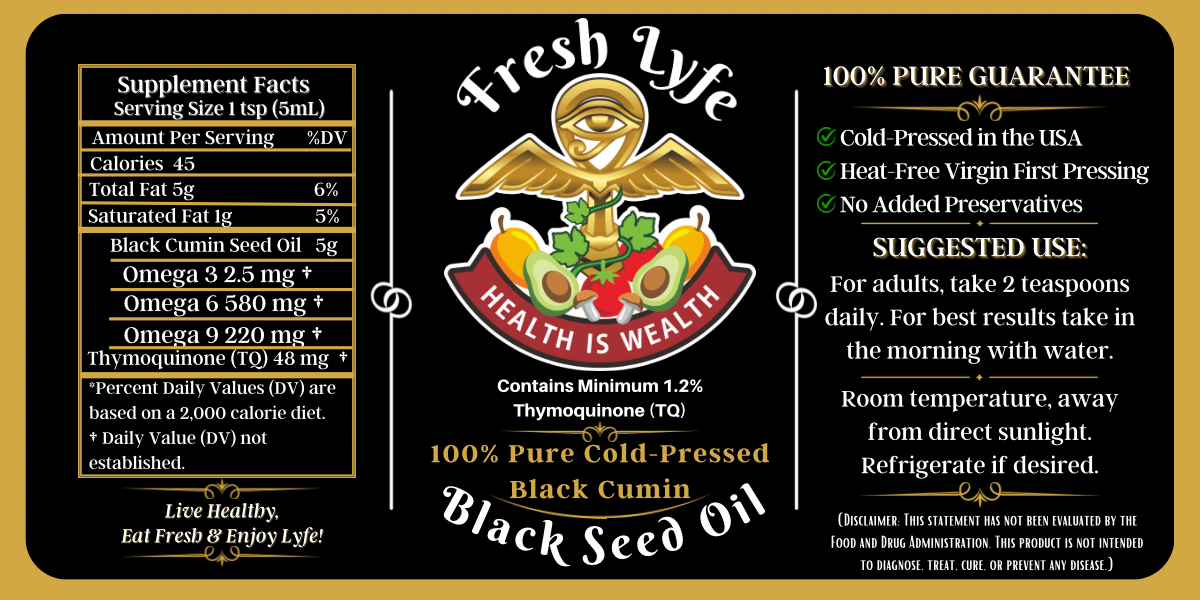 - 100% Cold-Pressed Black Seed Oil (Nigella Sativa)